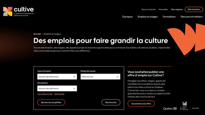 La plateforme québécoise dédiée au développement professionnel dans le secteur des arts et de la culture franchit une nouvelle étape. Le 10 mars, Cultive a dévoilé une version entièrement repensée de son site, avec l’objectif de mieux connecter les talents, les employeurs et les organisations qui composent l’écosystème culturel québécois.